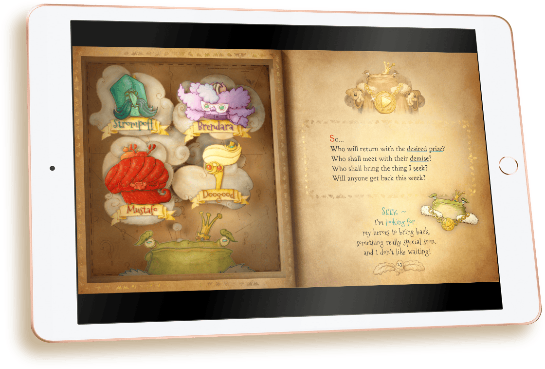 A Boovie® is Tapocketa’s term for a book-movie hybrid; a reference to the animated illustrations that adorn every page. The animated main character, King Galdo (voiced by British TV legend Brian Murphy), is also on hand to narrate the story. Children can make their way through the Boovie® at their own pace, with the trickier words explained by funny ‘pop up’ definitions that relate to the story.