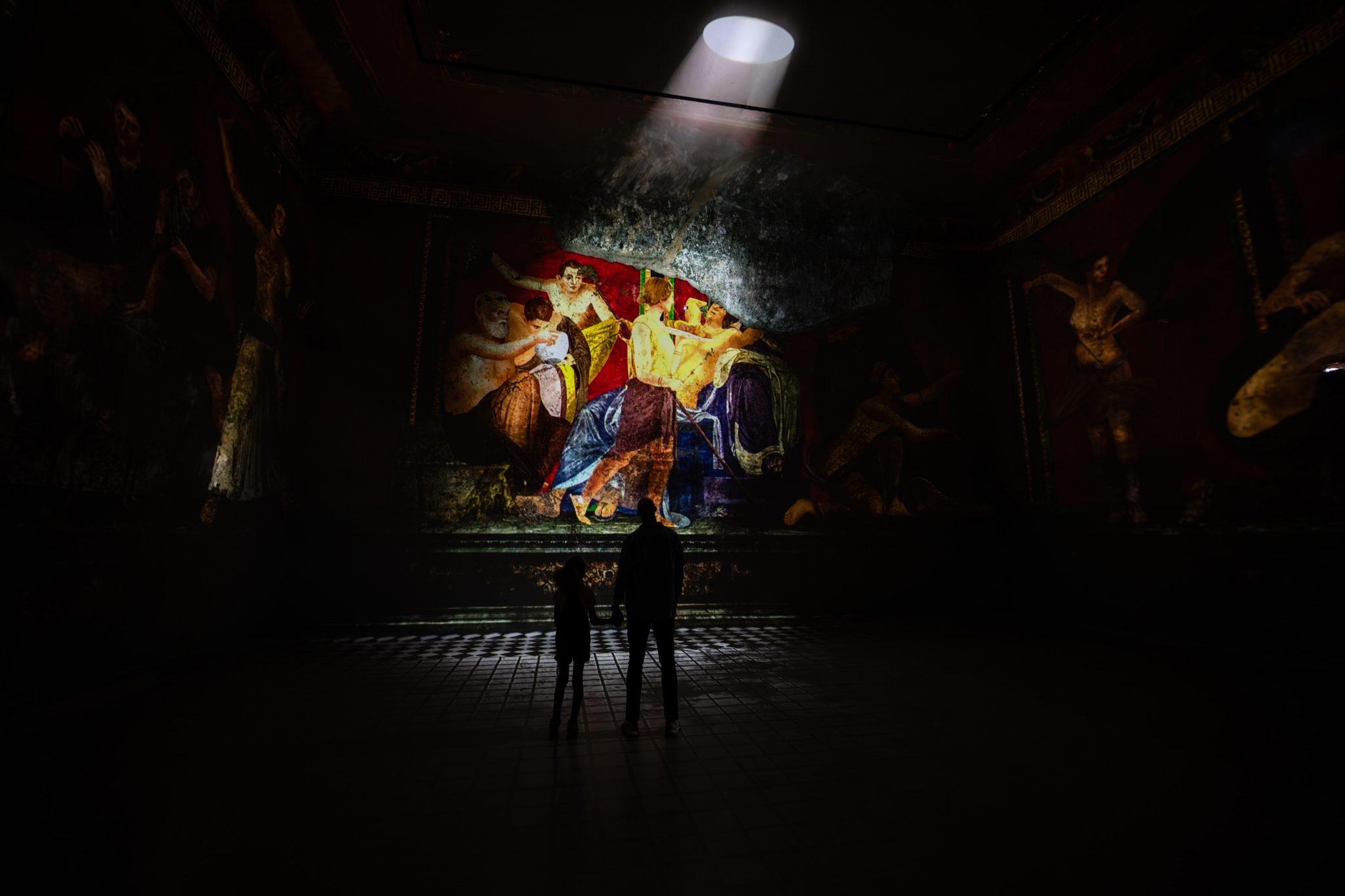 Straight from the Villa of the Mysteries, an ancient Roman villa on the outskirts of Pompeii; history meets art with this piece of Roman history, a 1st Century fresco from an unknown artist, has been brought to life into London for the first time. In the oldest artwork to be discovered in Frameless, one of the vignettes, a tray holding female, wanders around the room spotlighting intricate details of this stunning artwork as melodic tunes envelop the space. The sudden and dramatic crumbling of the building, that was flattened during the eruption of Pompeii, transports the viewer straight into a remastered version of JR Derby’s Vesuvius in Eruption, with visual effects specialists bringing to life the explosion on top of the volcano, the smoking fissures and the atmospheric movement of molten lava to land viewers inside the artist’s imagination.