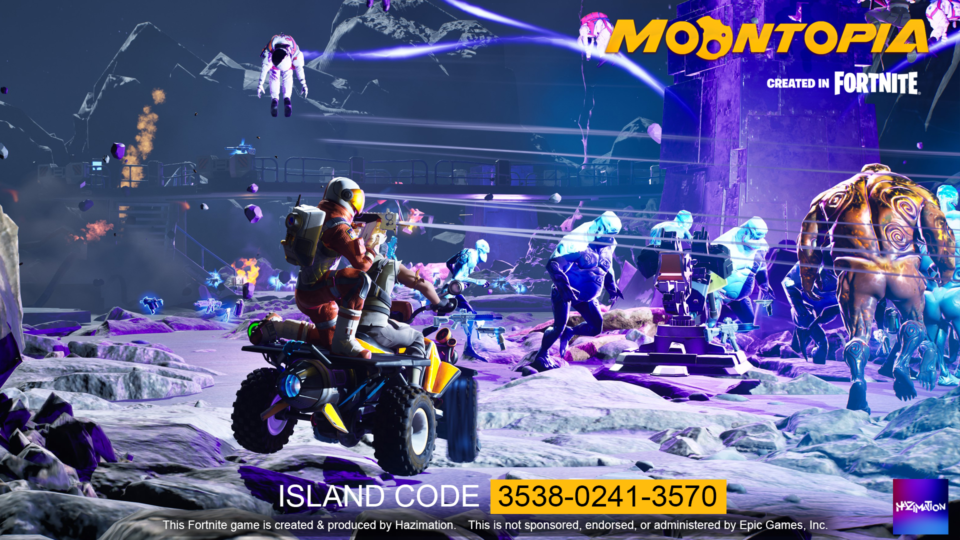 Moontopia is not limited to solo play, as the game includes a multiplayer mode. Players can team up with friends or against each other on the Fortnite platform, forming groups of up to six players to take on the challenges that await them on the mysterious moon, including saving astronauts trapped by energy beams, zip-lining across a deep crater with monsters below, driving moon buggies and more.