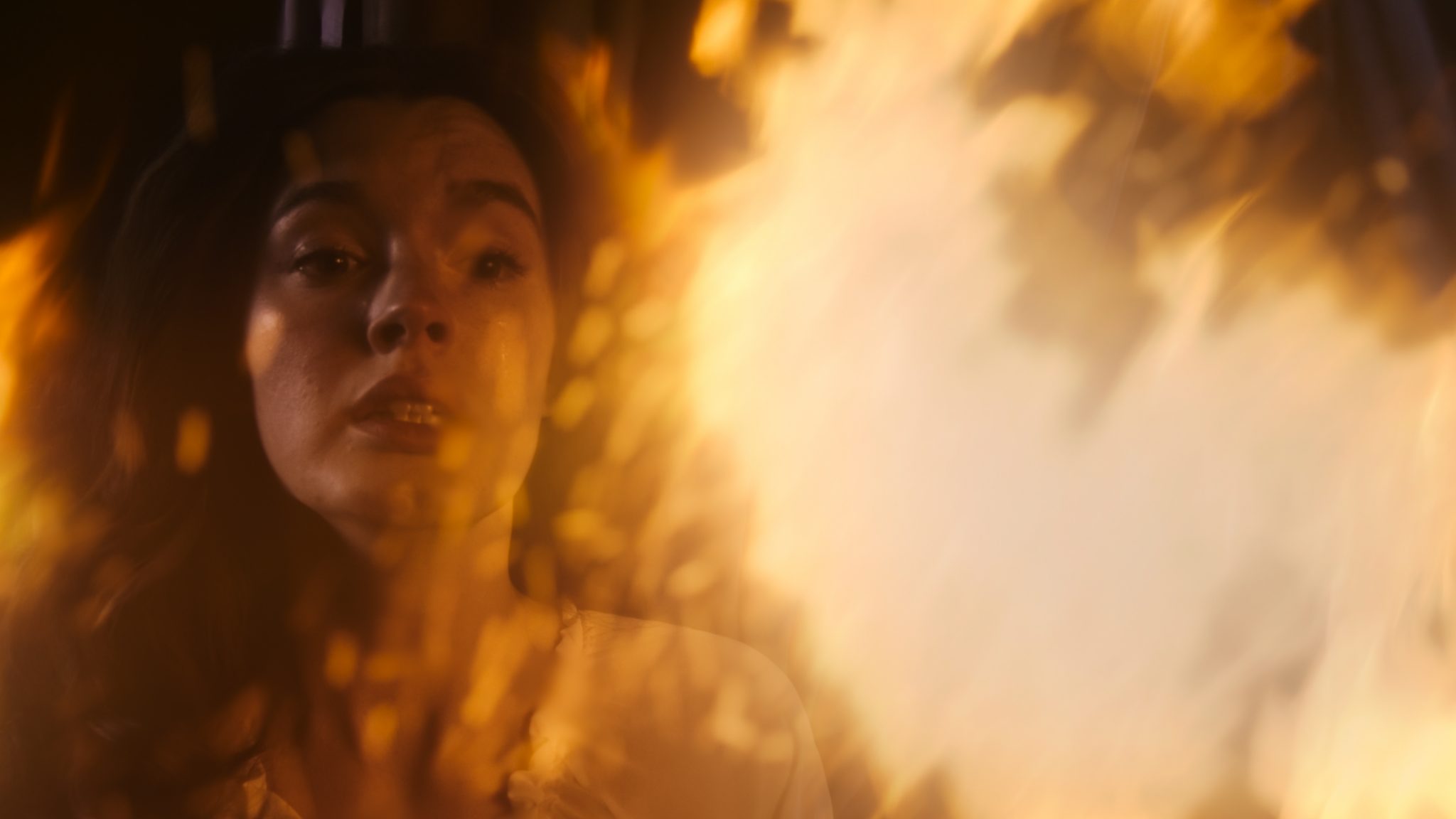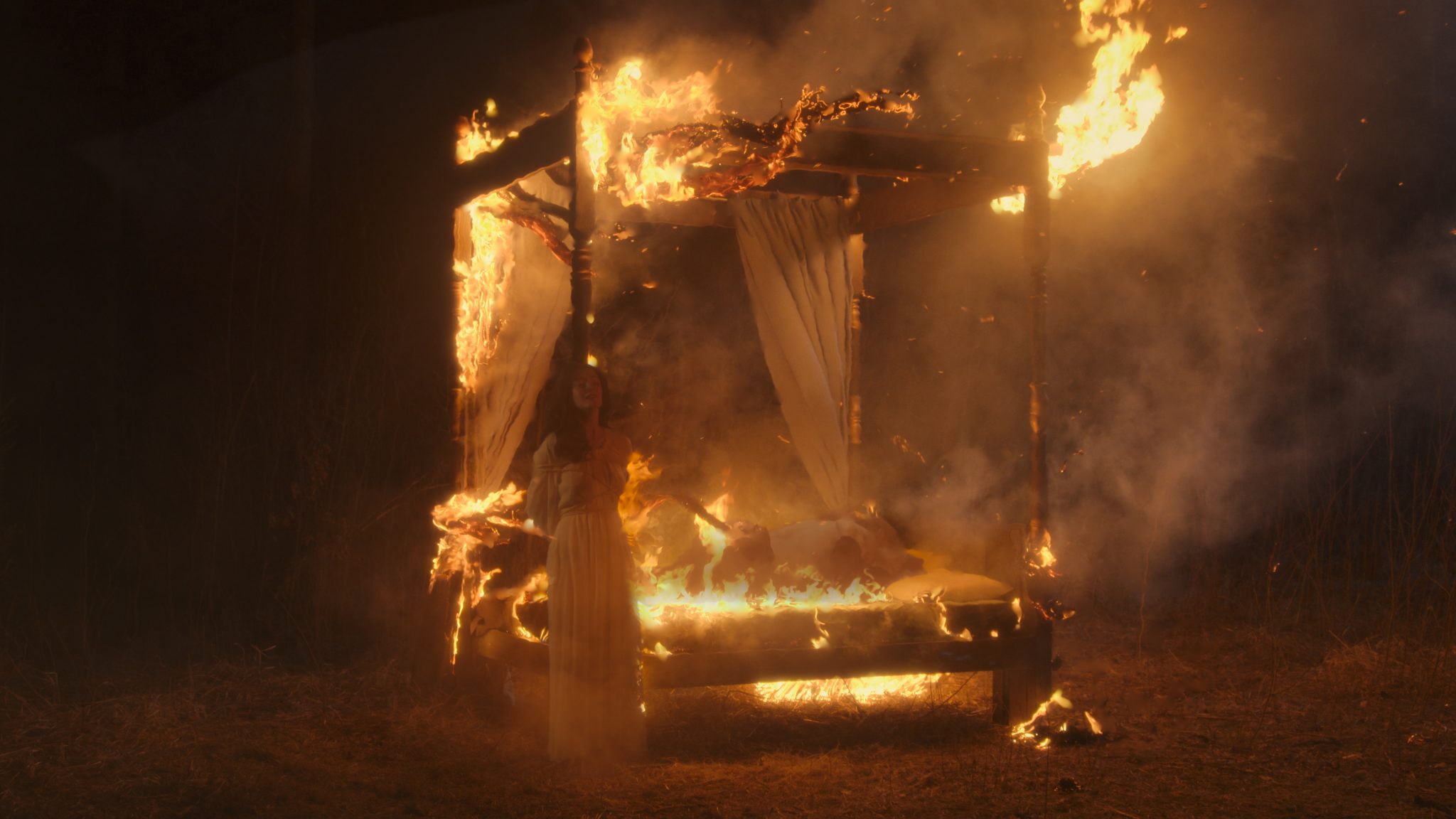 Another sequence focused on a dream in which Anne Boleyn finds herself tied to a burning bed. On set, the actors were filmed on the bed, which was later set on fire. The studio combined these two footage elements, adding supplementary flames, sparks, smoke and heat haze to create the impression that Anne was in the middle of the dreamy, surreal fire.